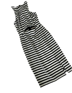 NICHOLAS Black White Stripe Stretch Poly Viscose Designer Dress Sz 8