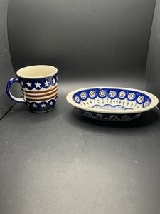 Wunderschöne Boleslawiec polnische Keramik Schale & patriotischer Becher