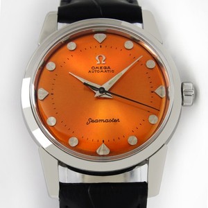 Vintage Omega Seamaster Auto Sunburst orangefarbenes Zifferblatt Herren Gold/Stahl Uhr um 1954