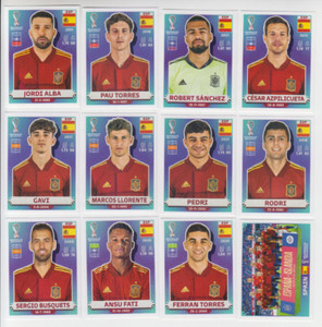 2022 Panini FIFA World Cup Qatar 2022 Team Spain (12 Stickers) Sanchez Alba +