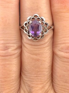 Sterling Silber Amethyst Ring mit geteiltem Schaft Größe 7 signiert CNA 925 lila Edelstein