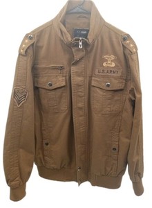 H. T. Niao Army Jacke Herren Gr. L-XL braun Full Zip Mantel mehrere Taschen Patches