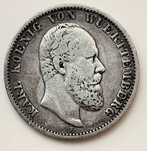 2 Mark 1877 F Württemberg Karl 1864-1891 Silber . J.172