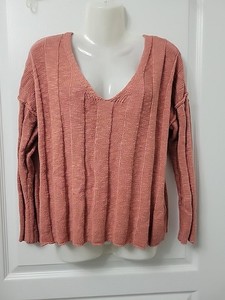 Neu mit Etikett Derek Heart Damenpullover V-Ausschnitt Large Langarmpullover rot Bindedetail