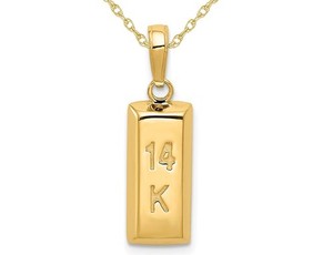 14K Gelbgold 3D Gold Barren Charm Anhänger Halskette mit Kette