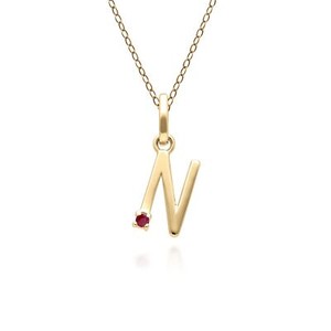 Initiale N Rubin Brief Halskette in 9ct Gelbgold