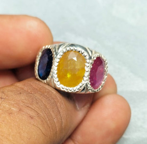 Natürlicher Neelam Saphir, Pukhraj Saphir & Yakoot Rubin Steine Ring Natur Edelsteine