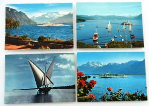 SCHWEIZ color Postkarten Lot 4 x Lac Léman Genfersee mit Schiffen Boot Dampfer