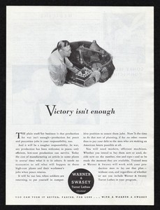 1944 Warner Swasey Revolver Drehmaschine Produktion Sieg Frieden Amerika Zukunft Druck Anzeige