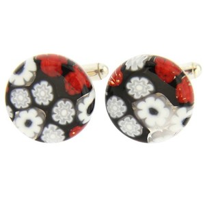 GlassofVenice Murano Glas Venezianisches Glas Millefiori Manschettenknöpfe - rot und schwarz CHF 42,04