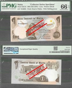 Malta P-34CS1 1 Lira Specimen 1967 (nd 1979) PMG 66