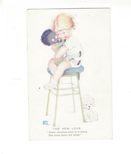 SE1127 VIKTORIANISCHES MÄDCHEN MIT PUPPE UND GROSSEM ST.BERNARD HUND MIT JESPERPUPPE IM MAUL CHF 7,25