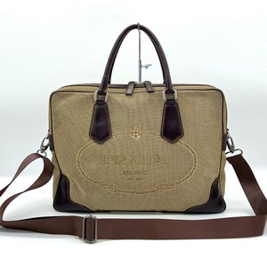 PRADA Logo Jacquard 2-Wege Businesstasche braun Canvas Leder Schulterriemen