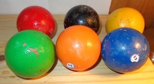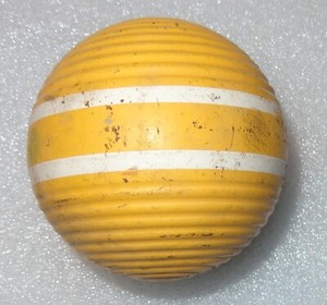 1 GERILLTER GERIPPTER HOLZ ALTER KROCKET SPIELBALL SCHWARZ 3 WEISSE STREIFEN 9-1/2 ZOLL RUNDUM CHF 8,02