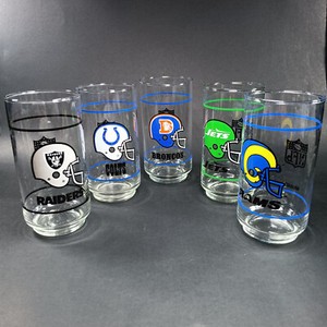 Drinking Glass Set, NFL Team Collection ~ Raiders, Colts, Broncos, Jets, Rams