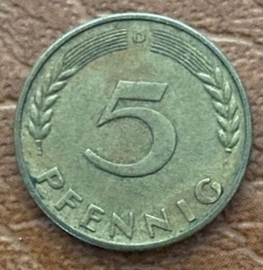 Deutschland 1950-D 5 Pfennig Vintage Münze!