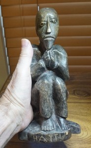 c 1960's signierte "HAITI" handgeschnitzte Holzstatue des sitzenden Mannes betend 9" groß