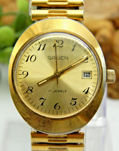 Vintage 17 Jewel Gruen Herren Armbanduhr goldfarben mechanisch zum Aufziehen CHF 0,791 Gebot2T 6Std 4 Min