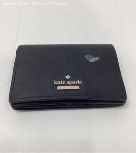 Kate Spade schwarze Leder Geldbörse mit s/w gestreiftem Innenleben
