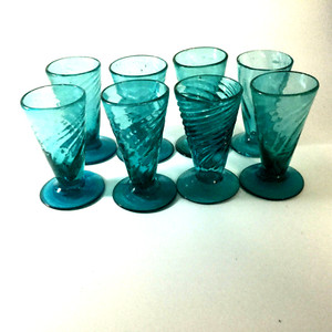 Vintage blaue Gläser 3 1/4""H Schnaps Schnaps Vintage Set 8
