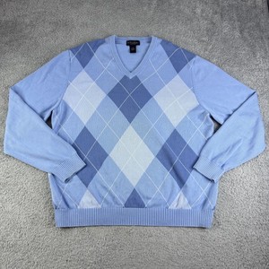 Brooks Brothers Pullover Herren Large Navy Seide Baumwolle V-Ausschnitt Fensterscheibe Pulli
