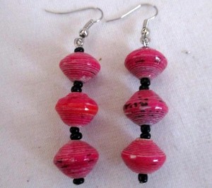2 1/4" Ohrhänger Schleife Ohrringe Dunkel Wein Recycling Papier Perle Golddraht Schwarz Perlen CHF 5,64