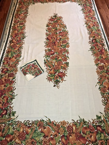 Vintage Leinen Herbst Tischdecke mit 4 Servietten Creme Herbst Ernte 102" x 56"