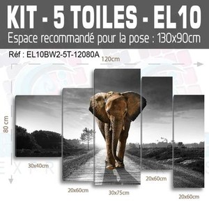 150x100cm- Kit 5 Gemälde Bedruckt Bild Deko - Elefant EL10BW-5T150100B- Stoff CHF 34,19 bis CHF 63,50