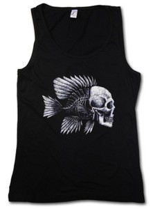 FISH SKULL DAMEN TANK TOP Fishing Fisher Rod Pole Bone Hunting Sea and Line