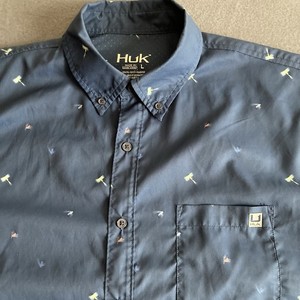 HUK Shirt Herren Large blau Fliegen Fischköder Tide Point Performance Angeln Outdoor