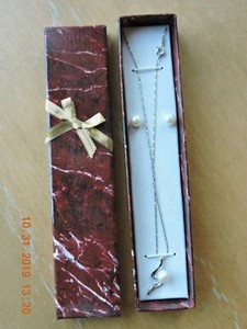 Genuine 7-9MM Fresh Water Pearl butterfly 18K GP Necklace+ Earring Set 16" white