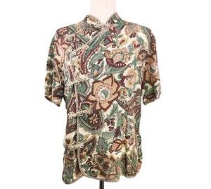 Vintage DELUXE 100 % Seide Damen chinesischer Stil Bluse Brokat Knotenverschluss Blumenmuster