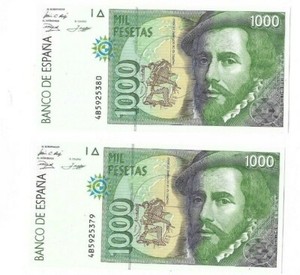 ESPAÑA: PAREJA 1000 PESETAS JUAN CARLOS (PIZARRO). AÑO 1992. CON SERIE. SC+.
