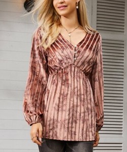 XXL (fällt klein aus) Neu ohne Etikett Damen Camisa weich Batik Knopf Akzent V-Ausschnitt LS Top CHF 23,64CHF 33,77