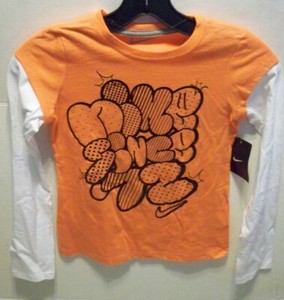 NIKE MÄDCHEN ORANGE L/S TEE T-SHIRT NIKE SINCE 72 WOLKENBUCHSTABEN AUF BRUST NEU $ 28
