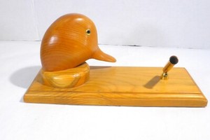 Holz Handarbeit Hartholz Entenkopf Schreibtisch Stifthalter Vintage Büro Deko