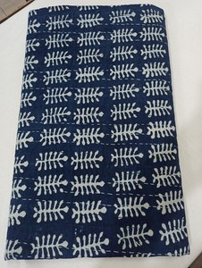 Indische Kantha Baumwolle Hand Blockdruck Blau Indigo Druck Handarbeit Decke Überwurf