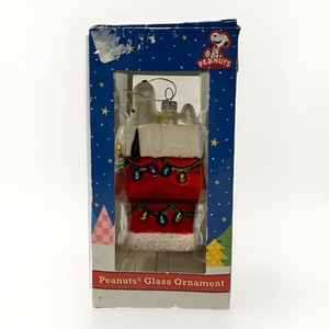 Peanuts Snoopy auf Hundehütte Glas Ornament Weihnachtsbeleuchtung Sonnenaufgang Grüße