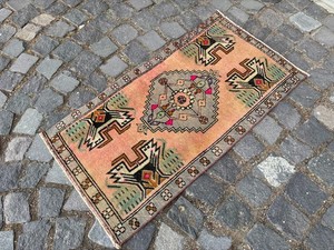 Vintage Handgeknüpfter Teppich, Türkische Kleine Teppiche, Böhmischer Wollteppich, Fußmatten 1,5 x 3,0 Fuß