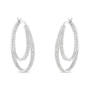 1/2 Karat echter Diamant Doppelreifen mit Latchback Ohrringen in Sterlingsilber