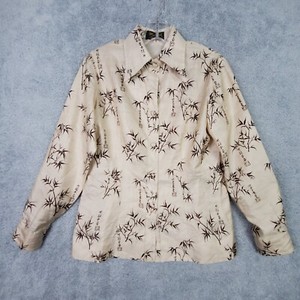 Vintage 70er Jahre Damen Seidenbluse S M beige Oberteil asiatischer Stil Punktkragen Bambusmuster CHF 30,26