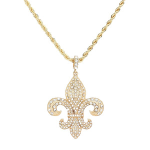 Iced Out Fleur de Lis Anhänger Halskette goldfarben Seil Kette Hip Hop Schmuck