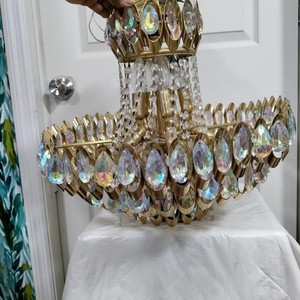 Vintage Messing Kristall Prisma irisierend Träne Design Deckenhalterung Kronleuchter