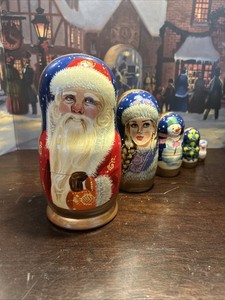 Vintage Hand Painted Russian Santa Matryoshka Nesting Doll - 5 Pce