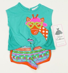SELTENE AUSGABEN 2-TEILIGES SET NEU KLEINKIND MÄDCHEN GRÜN GIRAFFE BAUMWOLLE NETZ TOP SHORTS 12M CHF 11,93