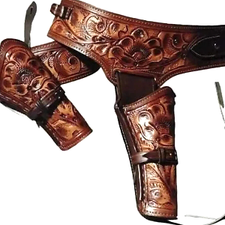 Waffenholster Ledergürtel verziert Cowboy Revolver Pistole Western Doppelholster