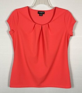Liz Claiborne Karriere Oberteil Damen S orange plissierter Ausschnitt Pullover kurze Ärmel neu mit Etikett CHF 10,04CHF 20,08