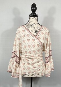 Max Edition Top Damen Medium Elfenbein Rosa Blumen Wickel Bindeband Taille Lange Glockenärmel CHF 10,04CHF 20,08