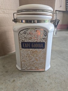 VINTAGE KÜCHE 8" HOCH Cafe Godiva weiß Kanister Keramik Kaffee Tee Keksdose