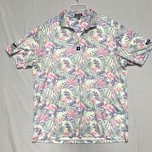Bad Birdie Flamingo Palm Tropical Purple Performance Golf Polo Shirt Herren XXL 2XL